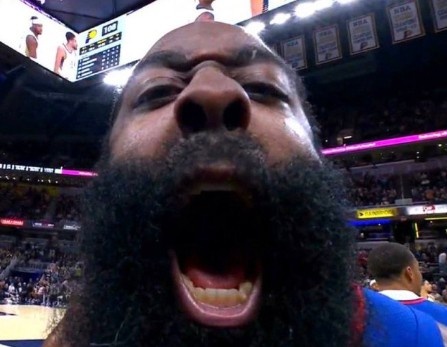猛龙球迷:那特么是个啥啊(指哈登离谱又牛逼的表现)。