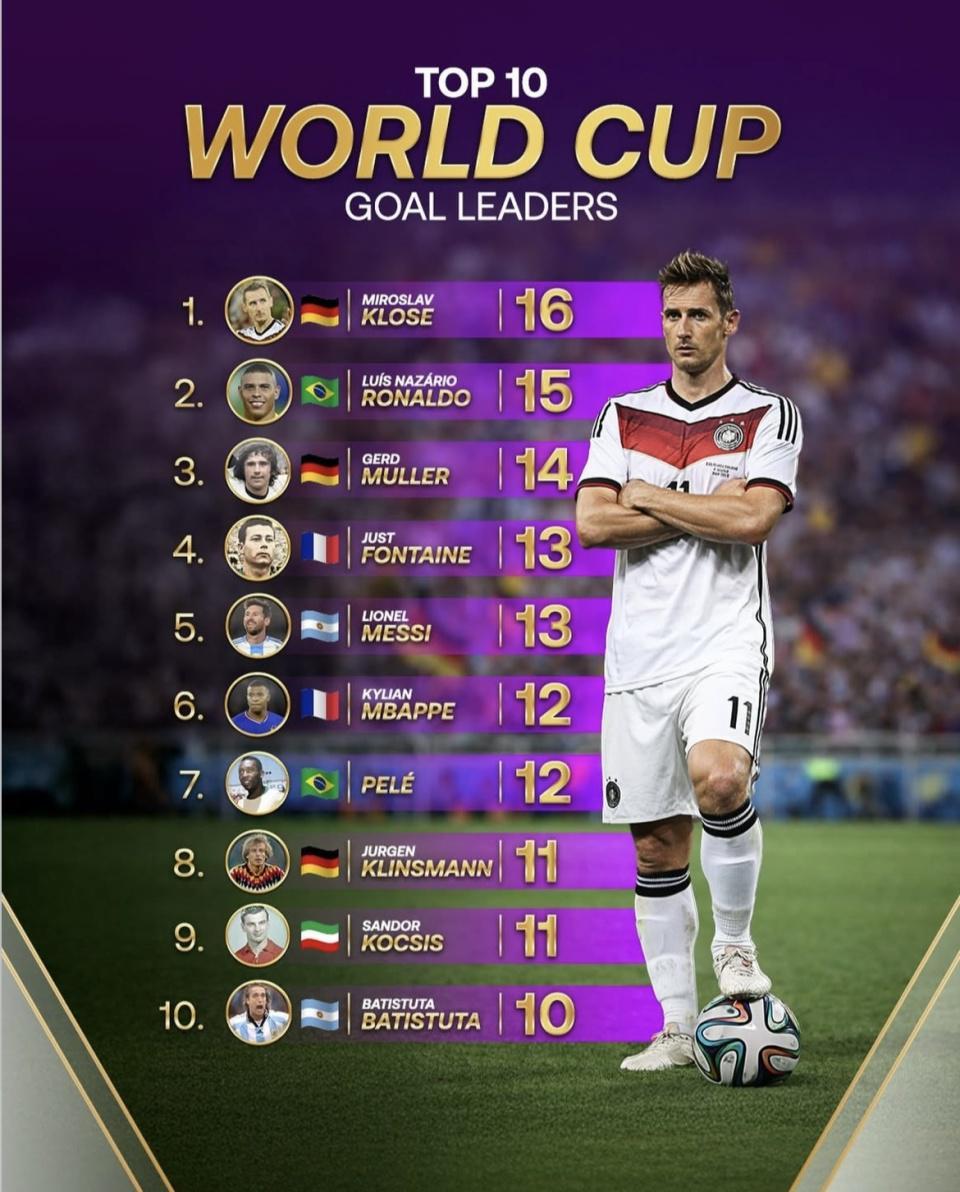 克洛泽、罗纳尔多、穆勒、方丹这些数字不会再变;能把自己的世界杯进球继续往上加的,实际上只剩梅西和姆巴佩。换句话说,2026结束后前五怎么排,不看“老前辈”,就看这两个人分别加多少球。