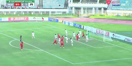 第52分钟,日本队角球开到门前,22号头球破门打破僵局,日本1-0缅甸